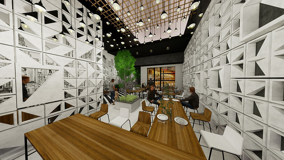 8 Portions Restaurant specializes in Italian pizza with distinct additions and new types of pizza . Services: Interior DesignElectrical DesignMechanical DesignLighting DesignVisualization